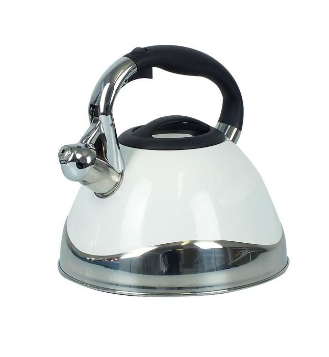 Jego zaletą jest szeroka podstawa, dzięki czemu gotowanie wody jest szybsze i energooszczędne. Dodatkowo, czajnik ma gwizdek, który zawiadomi o wrzeniu, otwierany za pomocą przycisku w tylnej części rączki.
