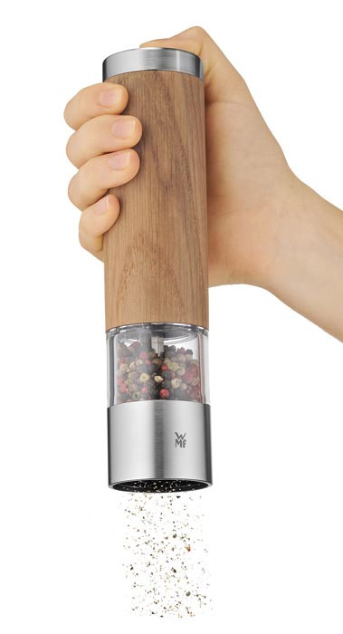 Elektryczny młynek do przypraw WMF z elementami drewna to nowoczesna propozycja do każdej kuchni – pięknie zaprezentuje się na blacie i nie trzeba go chować do szafki.