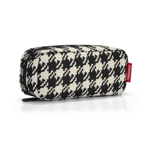 Kosmetyczka wykonana jest z wytrzymałego poliestru w pepitkę i zamykana na suwak. Wewnątrz znajduje się płaska, zasuwana kieszonka oraz 2 boczne.