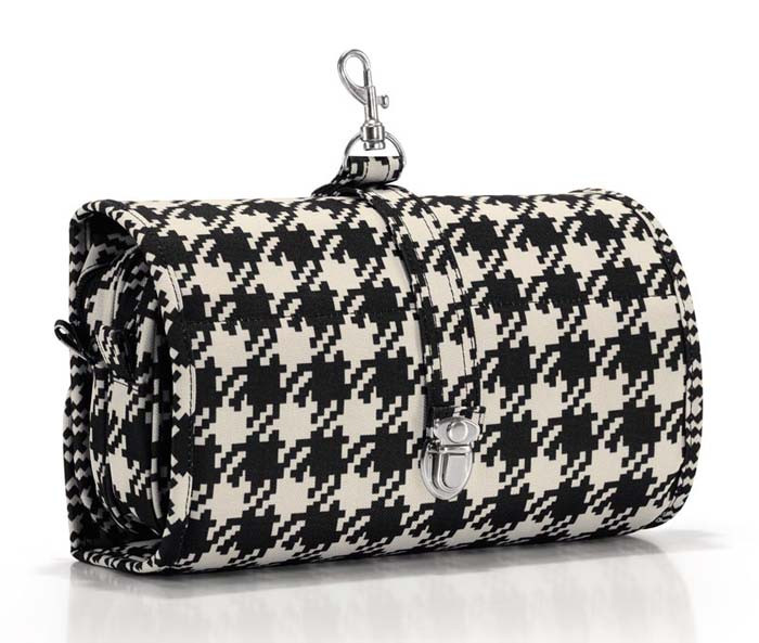 Kosmetyczka Wrapcosmetic marki Reisenthel wykonana jest z poliestru w pepitkę, można ją składać i rozkładać, dlatego doskonale sprawdzi się podczas podróży.