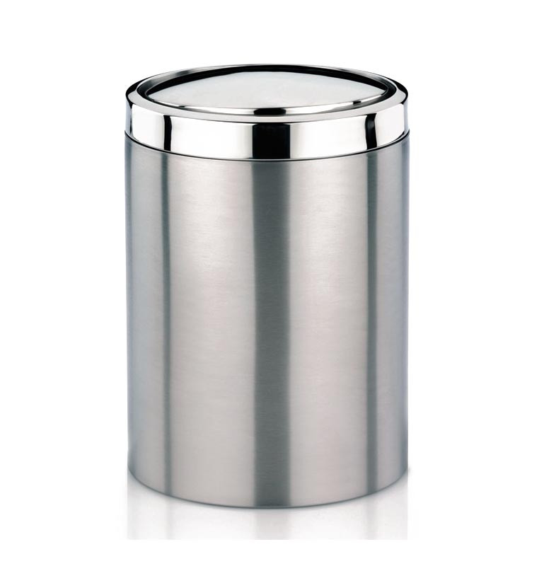 Kosz wykonany jest ze stali nierdzewnej i ma pojemność 7 l. Zaletą jest klapowa pokrywa, która umożliwia korzystanie z kosza jedną ręką.