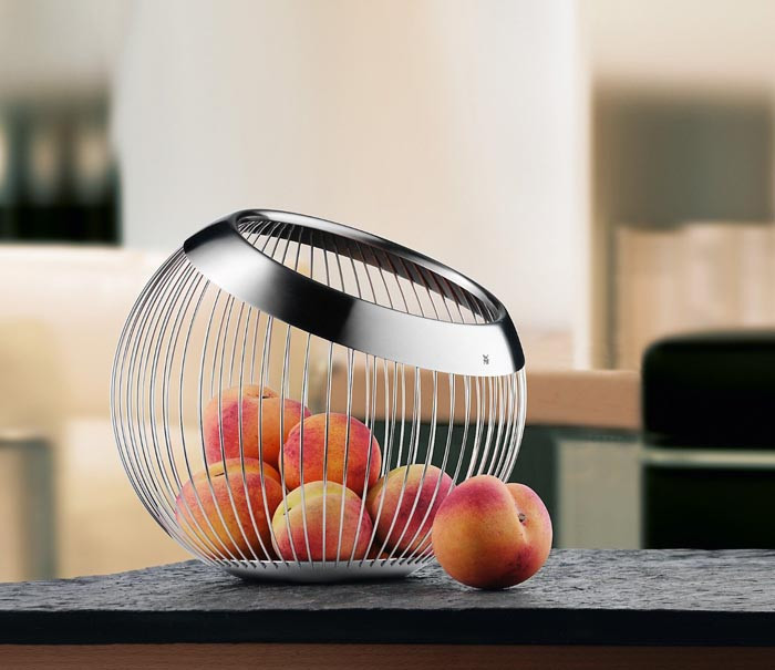 Oryginalny kosz na owoce z asymetrycznym otworem Lounge WMF będzie prawdziwą ozdobą Twojego domu.