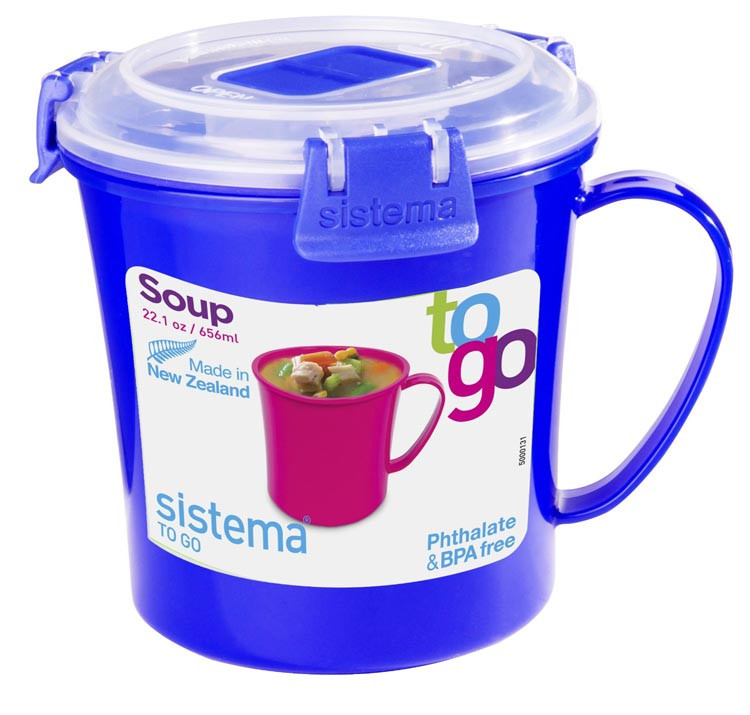 Kubek z kolekcji To Go Sistema przeznaczony jest na płyny lub dania, które można podgrzać w kuchence mikrofalowej.