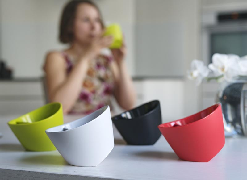 Ekstrawagancka i oryginalna – taka jest filiżanka do zaparzania herbaty marki Magisso. Wykonana jest z koralowego tworzywa sztucznego wykończonego w połysku i posiada wyjmowane sitko.