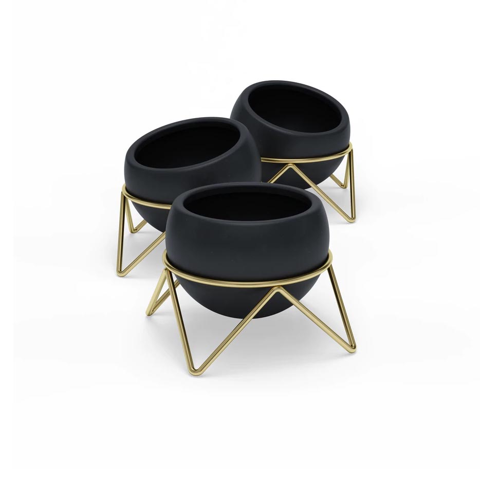 1. Zestaw 3 doniczek (czarno-złoty) Potsy Umbra
