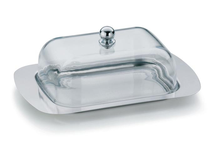 Elegancka maselniczka Baldo Kela wykonana ze stali nierdzewnej 18/10 i szkła. Nadaje się zarówno do serwowania masła podczas śniadania, jak i przechowywania go w lodówce.
