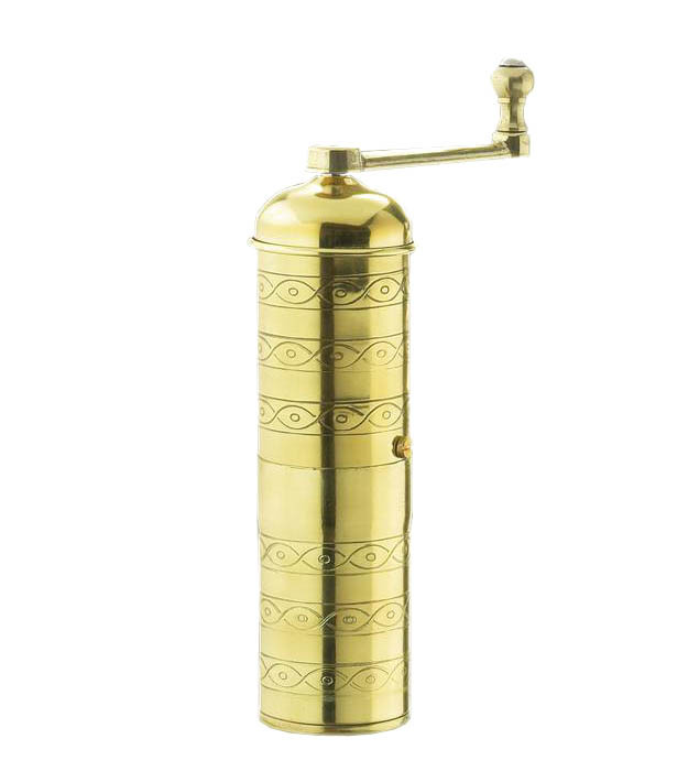 Napędzany jest ruchami korbki, dlatego nadaje się do użycia również w miejscach, gdzie nie ma prądu. Młynek ozdobiony jest orientalnym grawerem.