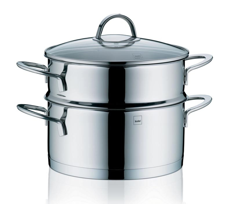 Wykonany jest on ze stali nierdzewnej i składa się z garnka, wkładu oraz szklanej pokrywki. Na dno garnka wlewamy wodę, wstawiamy wkład z warzywami, mięsem lub rybą i przykrywamy pokrywką.