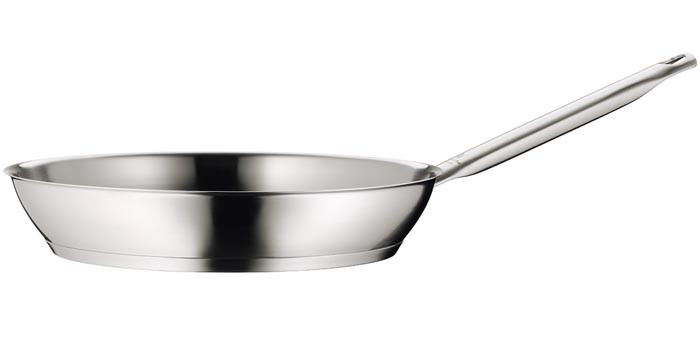 Patelnia z kolekcji Gourmet Plus WMF o średnicy 24 cm. Wykonana jest z matowej stali nierdzewnej Cromargan® - opatentowanego przez WMF stopu metali, odpornego na uszkodzenia i zadrapania.