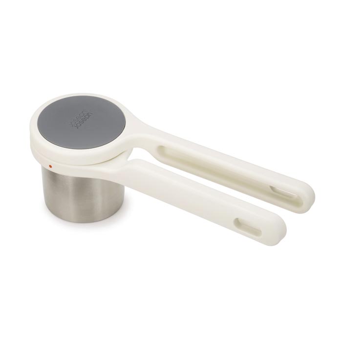 Wykonany jest z tworzywa sztucznego i posiada zaokrągloną po bokach pokrywkę z uszczelnieniem. Co ważne, znajduje się w niej otwór, przez który można zobaczyć, co jest w środku – praktyczne rozwiązanie, gdy przechowujesz pojemnik w szufladzie.