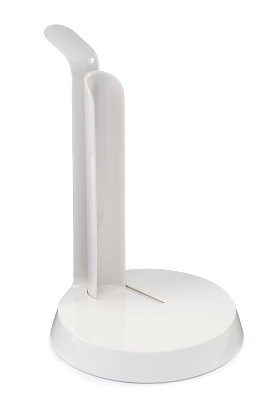 Pojemnik wykonany został ze stali malowanej na biały, matowy kolor. Dolną część korpusu zdobi minimalistyczny wzorek w kreseczki.