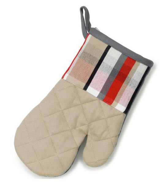 Rękawica wykonana jest z 100% bawełny wysokiej jakości i wzmocniona pikowaniem. Ma uchwyt do zawieszenia, aby była zawsze pod ręką. Zdobi ją dekoracyjny pas z materiału w kratę.