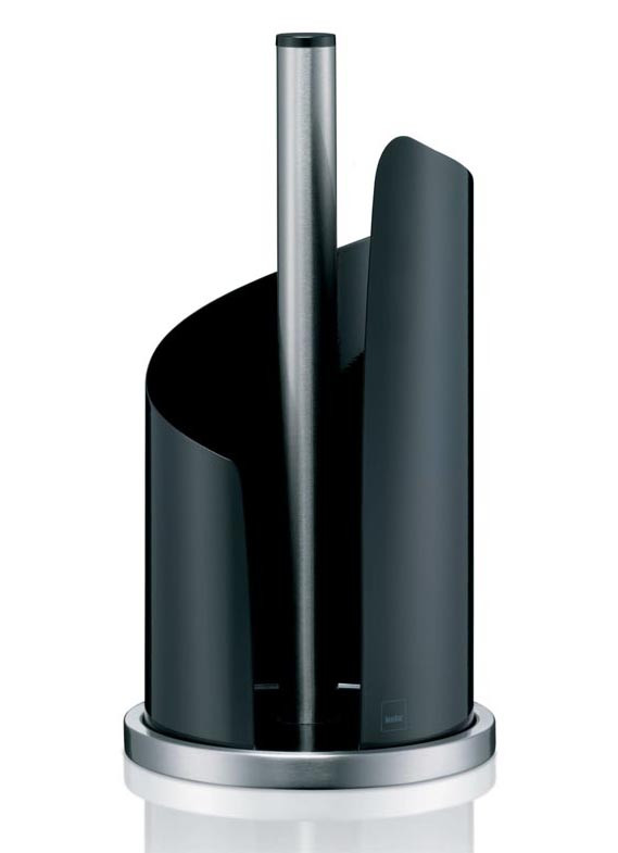 Stojak na ręcznik papierowy Stella Kela wykonany jest z metalu malowanego na czarny kolor i wyróżnia się obudową w kształcie fali. Będzie pasował do nowoczesnego wystroju kuchni. W stojaku pięknie prezentują się kolorowe ręczniki.
