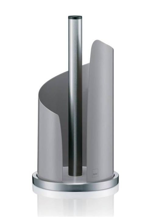 Stojak na ręcznik papierowy Stella Kela wykonany jest z metalu malowanego na szary kolor i wyróżnia się obudową w kształcie fali. Będzie pasował do nowoczesnego wystroju kuchni. W stojaku pięknie prezentują się kolorowe ręczniki.