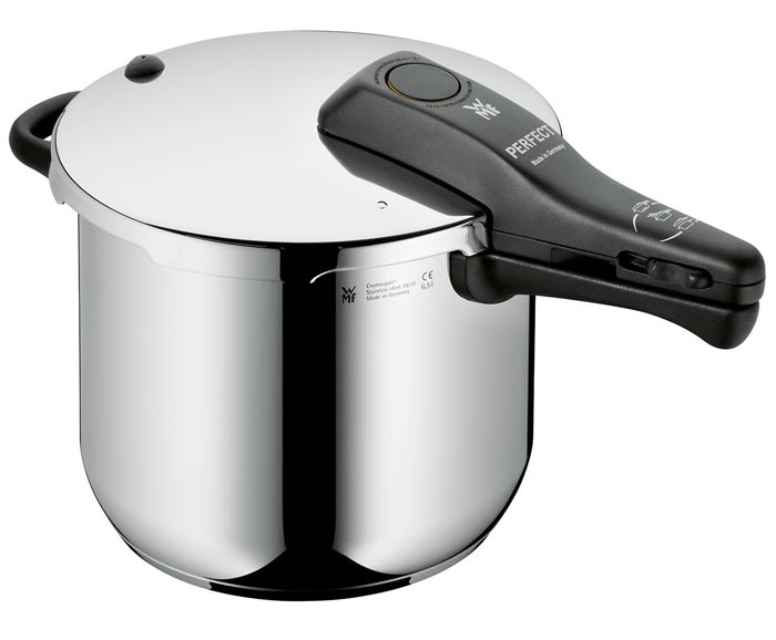 Szybkowar Perfect WMF o pojemności 6,5 l wykonany jest z Cromargan®’u polerowanej stali nierdzewnej 18/10 i wyposażony w stalową pokrywkę z uchwytem z tworzywa sztucznego.