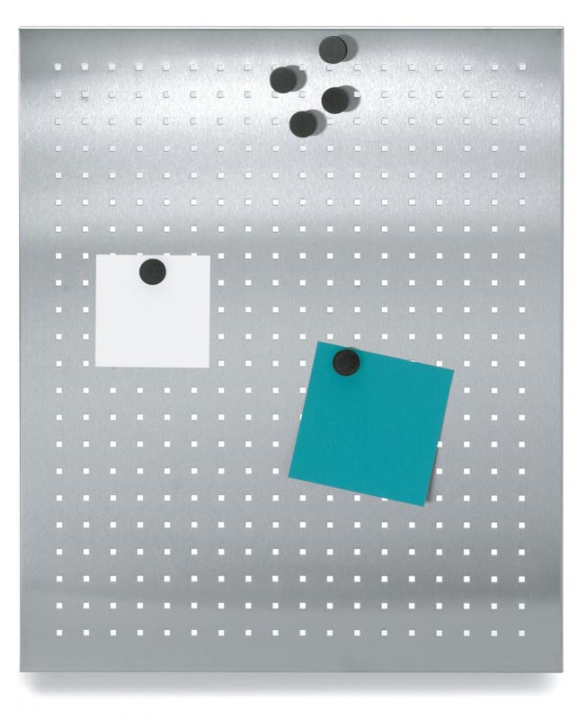 Tablica perforowana Muro Blomus w rozmiarze M wykonana jest z matowej stali nierdzewnej. Możesz do niej przypiąć informacje na fiszkach za pomocą magnesów.