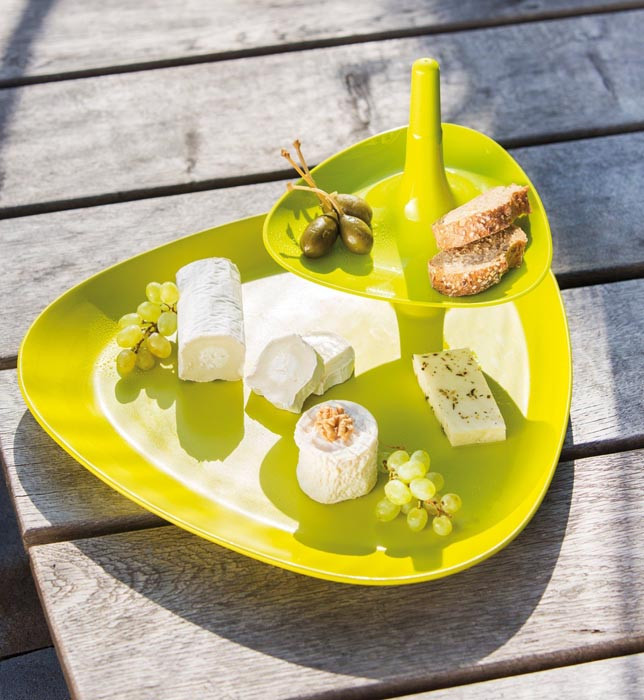 Została tak zaprojektowana, aby dolny poziom był szeroką przestrzenią na np. sery, ciasta, owoce, koreczki itp. Górny poziom można wykorzystać na drobne przekąski albo np. wypełnić sosem.