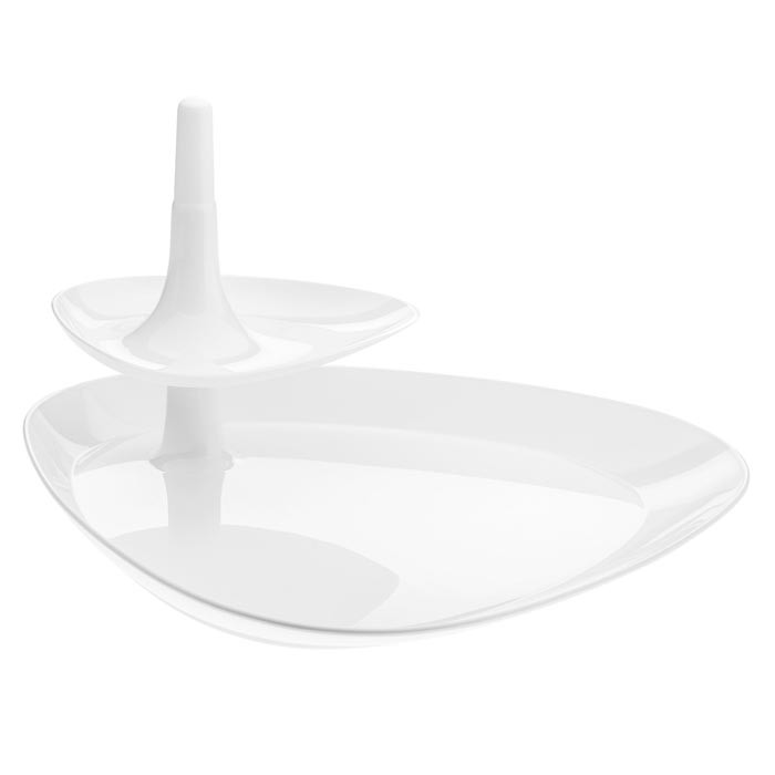 Taca wykonana jest z białego tworzywa sztucznego, a obu poziomów można też używać niezależnie jako półmisków.