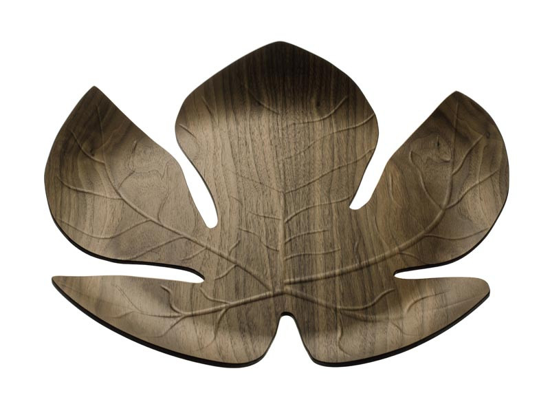 Dlatego taca Adamo Legnoart ma kształt liścia, a jej powierzchnia ma delikatny wzór imitujący żyłkowanie liści.