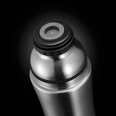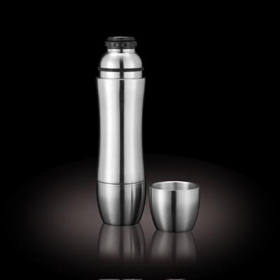 Wyposażony w 2 kubki – jeden mieści się w podstawie, drugi jest zakrętką. Razem z korpusem tworzą one bardzo intrygującą całość.