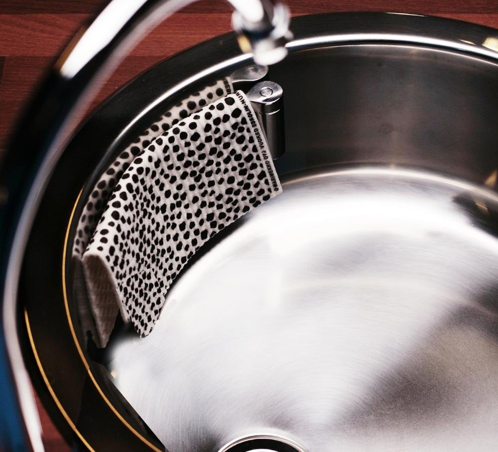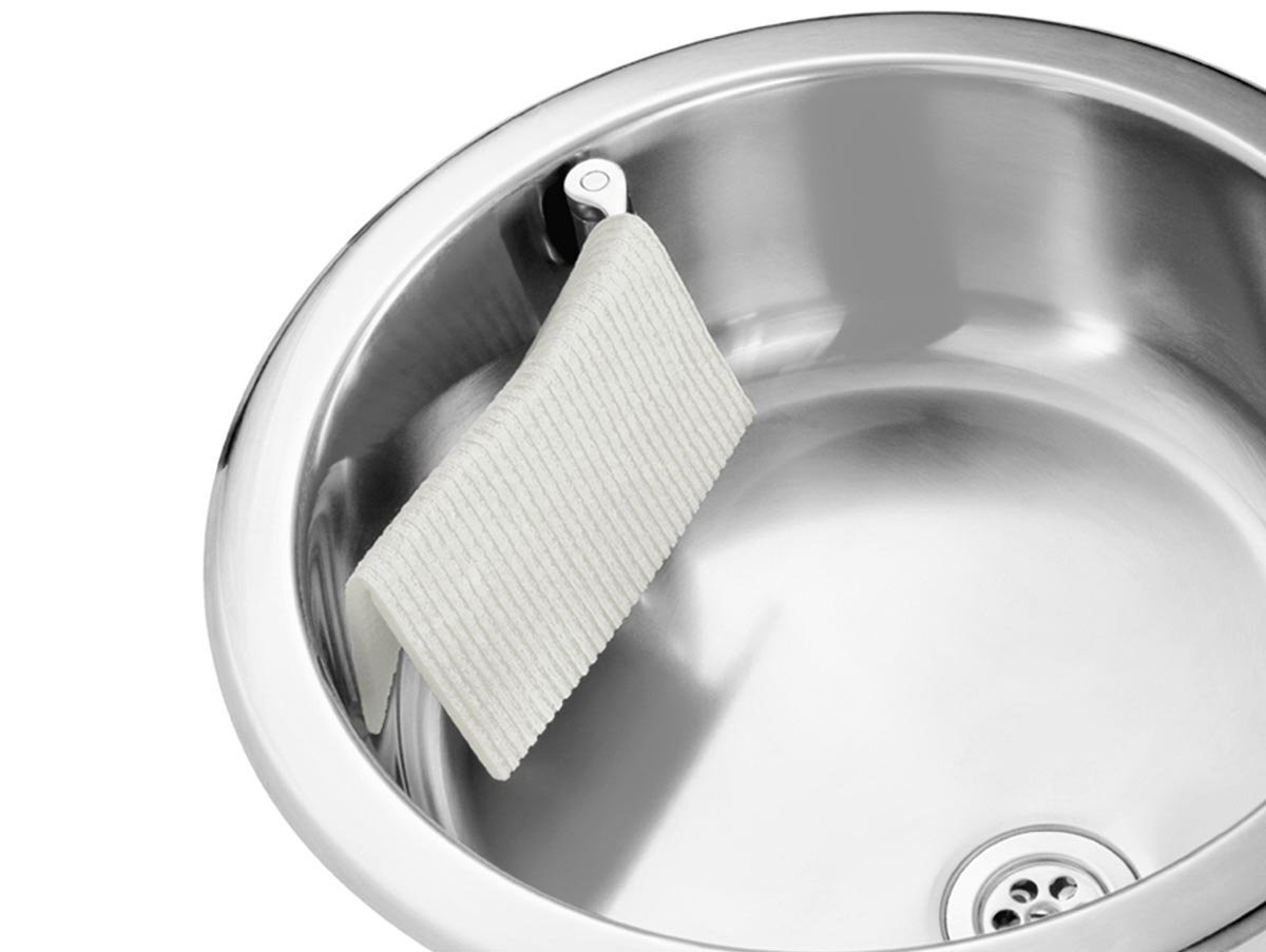Doskonale nadaje się do okrągłych zlewów – dzięki wyprofilowanemu uchwytowi powstaje dodatkowa przestrzeń między ściereczką a ścianką zlewu.