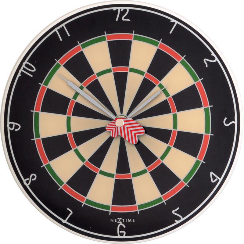 Zegar Barney Nextime spełnia nie tylko te kryteria. Wykonany jest w całości ze szkła, a jego cyferblat jest jednocześnie imitacją tarczy do lotek. Wrażenie to potęgują wskazówki w kształcie samych lotek.