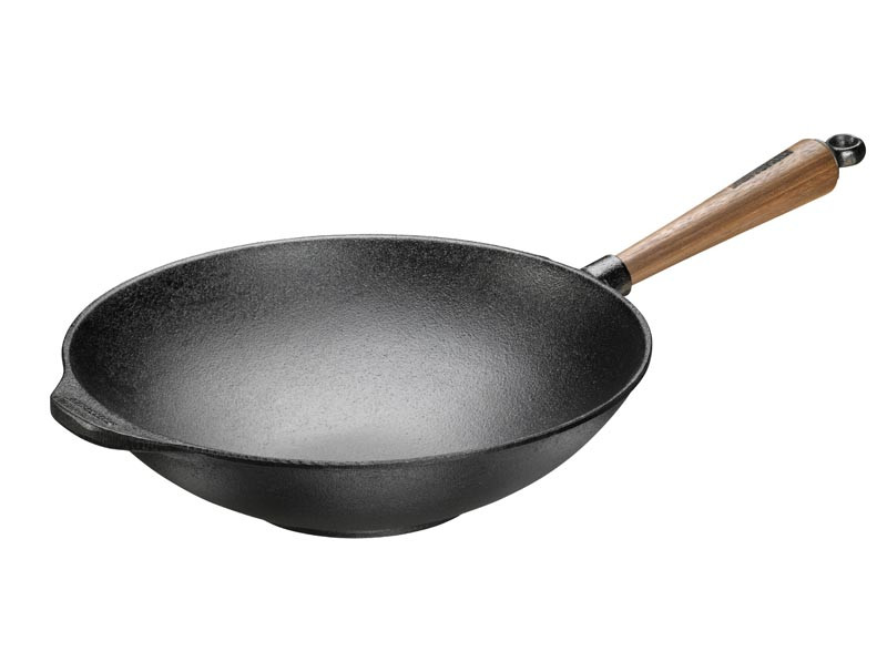 Żeliwny wok z kolekcji Walnut posiada rączkę z drewna orzecha włoskiego w lekko czekoladowym kolorze. Doskonale sprawdzi się do przygotowania dań kuchni azjatyckiej oraz ryżu z warzywami, duszonego mięsa, krewetek itp. Wysokie brzegi nachylone pod kątem sprawią, że potrawa nie będzie wysypywać się z patelni.