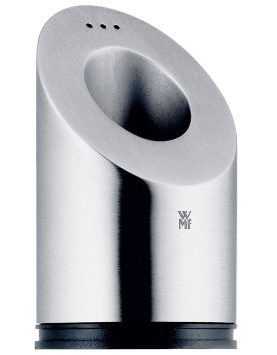 Przyprawniki wykonane są z odpornej na zniszczenia matowej stali nierdzewnej 18/10 Cromargan®, węższy do soli, a szerszy do pieprzu.