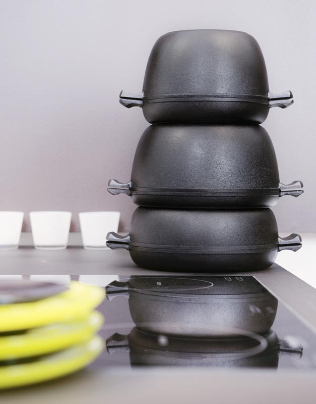 Naczynia mogą być używane na ogniu, kuchniach elektrycznych, ceramicznych oraz na płytach indukcyjnych. W żeliwnych naczyniach nie zaleca się gotowania wody.